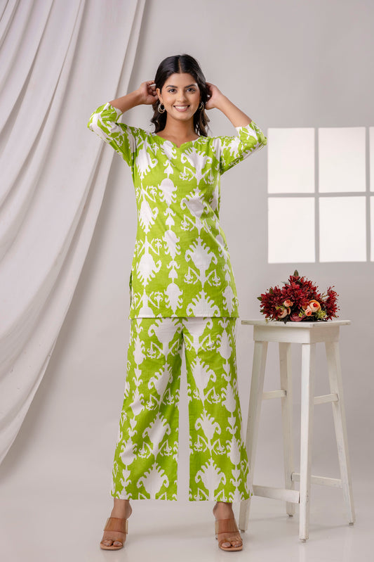 PoshArt Parrot Green Printed Cotton Co-ord set.