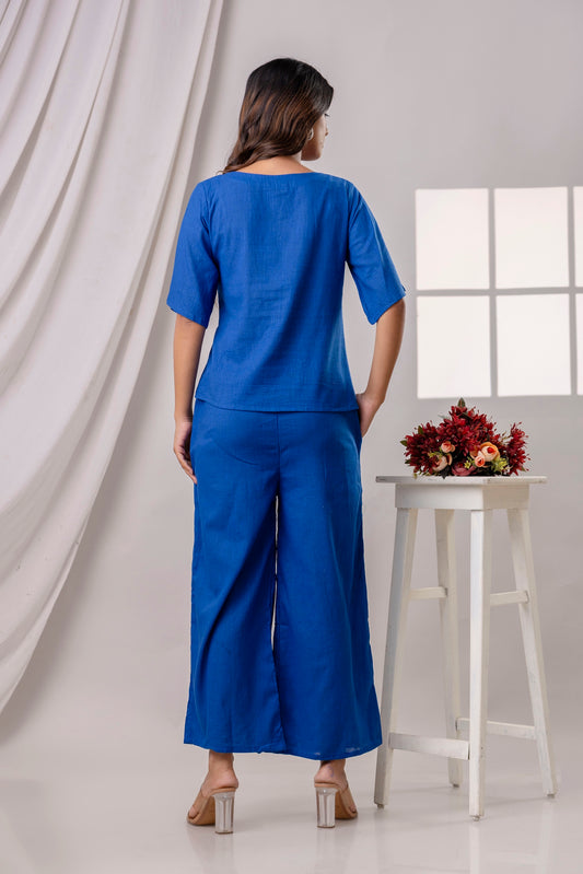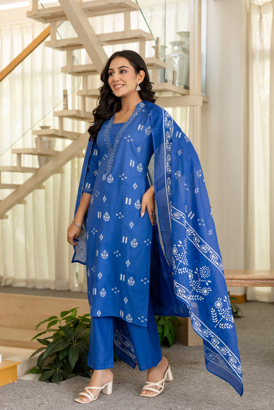 PoshArt Blue Indigo Straight Kurti Pant Set With Duptta