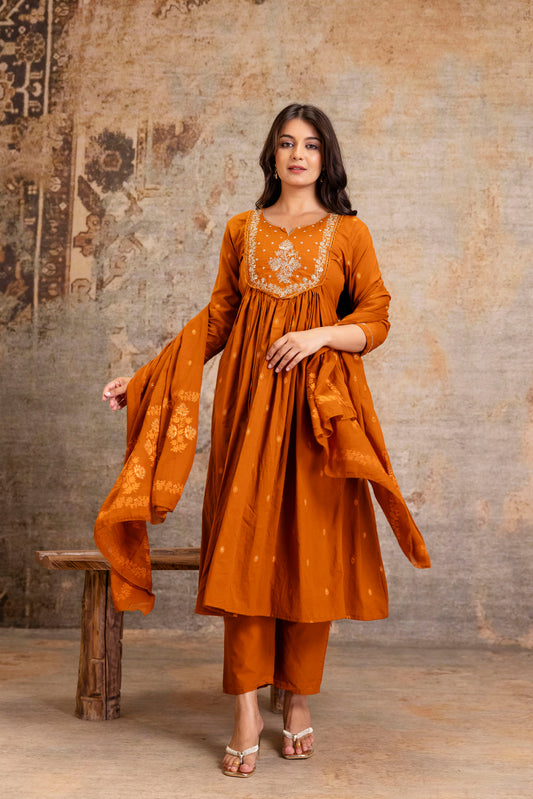 Poshart Handwork Zari Kurta Pant Duptta Set